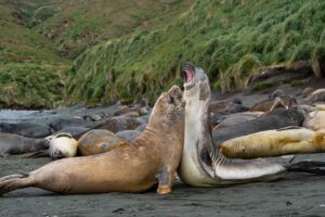 The Auckland Islands group was formed by two volcanoes which erupted some 10-25 million years ago. They have subsequently been eroded and dissected by glaciation creating the archipelago as we know it today. Enderby Island is one of the most beautiful islands in this group and is named after the same distinguished shipping family as one of our previous vessels. This northern most island in the archipelago is an outstanding wildlife and birding location and is relatively easy to land on and walk around. The island was cleared of all introduced animals (pests) in 1994 and both birds and the vegetation, especially the herbaceous plants, are recovering both in numbers and diversity. Our plan is to land at Sandy Bay, one of three breeding areas in the Auckland Islands for the Hooker’s or New Zealand Sea Lion, a rare member of the seal family. Beachmaster bulls gather on the beach, defending their harems from younger (ambitious) males, to mate with the cows shortly after they have given birth to a single pup. Hooker’s or New Zealand Sea Lion numbers are in a slow decline, for reasons which are not obvious but most probably connected with a nearby squid fishery. During our day ashore there will be several options, some longer walks, some shorter walks and time to spend enjoying the wildlife. The walking is relatively easy. A boardwalk traverses the island to the dramatic western cliffs, from there we follow the coast and circumnavigate the island. Birds that we are likely to encounter include the following species: Southern Royal Albatross, Northern Giant Petrel, Auckland Island Shag, Auckland Island Flightless Teal, Auckland Island Banded Dotterel, Auckland Island Tomtit, Bellbird, Pipit, Red-crowned Parakeet, Yellow-eyed Penguin and Light-mantled Sooty Albatross. There is also a very good chance of seeing the Subantarctic Snipe. Other more common species we will see include the Goldfinch, Song Thrush, Blackbird, European Starling, Red-billed Gull and Redpoll. On Derry Castle Reef we will look for migratory waders which could include Bar-tailed Godwit, Turnstone and possibly vagrants.