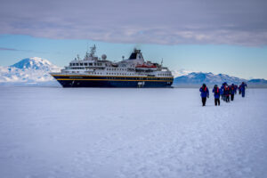 - Cruise alongside colossal ice shelves and active volcanoes.