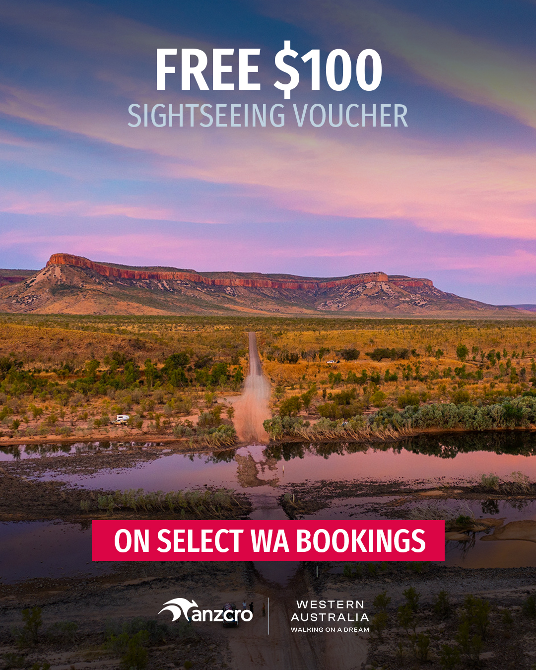 ANZCRO $100 sightseeing voucher is valid on bookings made from now to 20 December 2025 that include a minimum of 2 nights or $500 of Western Australia product. Voucher valid for use with the qualified booking on Western Australia product only and is not redeemable for cash. Sightseeing bonus voucher only offered to clients booking through a New Zealand travel agent.